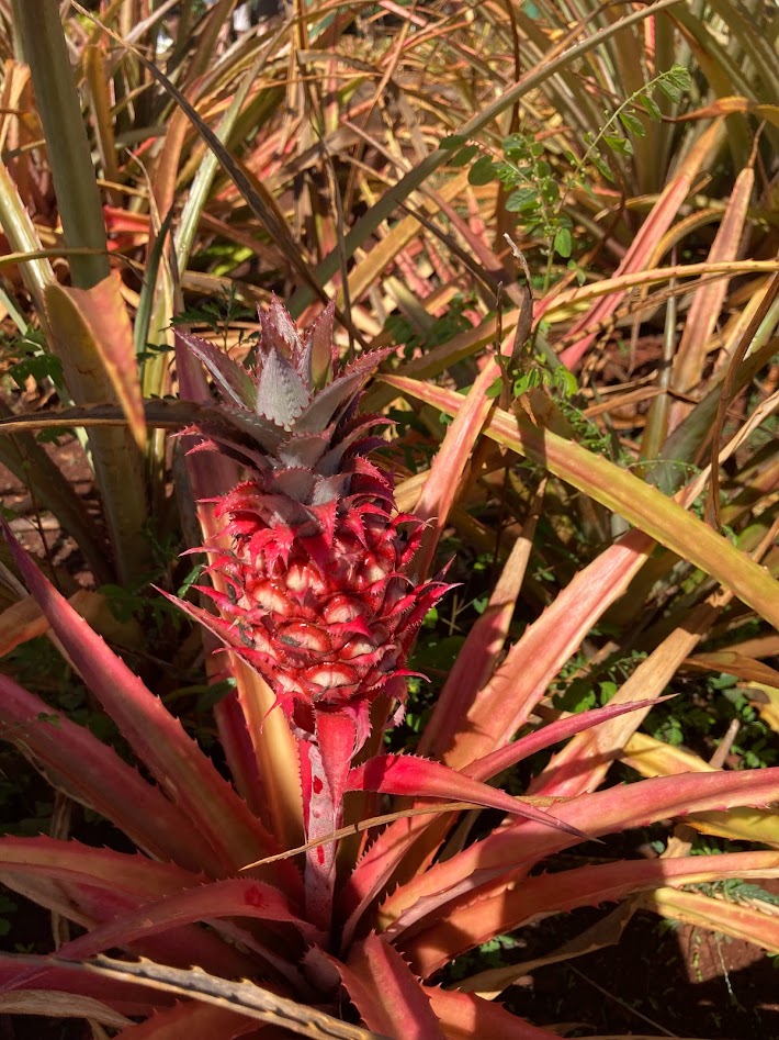“Baby pineapple!” our own baby said as she saw one of the small, pink pineapples growing from the ground. They basically look like they are growing from a stocky-leafed bush.