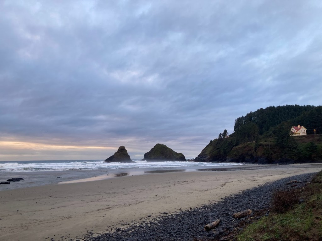 This would be my third time visiting this lighthouse so I was not phased by it being the end of the day and us hitting darkness on this hike. After all, we were on the Oregon Coast in December. We brought a flashlight and made sure our phones had ample battery life.