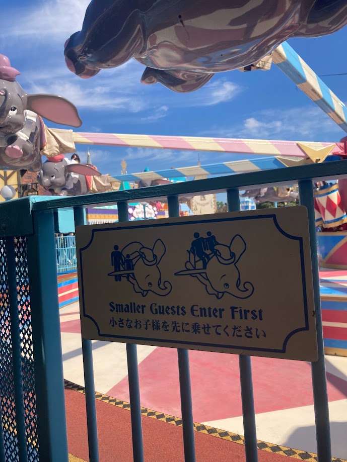 My dad and Bryce both looked to me after we walked through the castle and asked me what “the plan” was. I didn’t know. But, I figured we should try to get in line for a ride to at least attempt one ride with baby. We were in Fantasyland so naturally we got in line for Dumbo since my baby loves elephants. Although Anaheim Disneyland allows two parents and a child to ride the Dumbo ride together, in Tokyo they only allow one parent with a child on the ride. So, I waited with baby in line and prayed to whatever higher power exists that there wouldn’t be any screaming and crying for Daddy. (She had a very strong preference for dad over mom … and still does.)